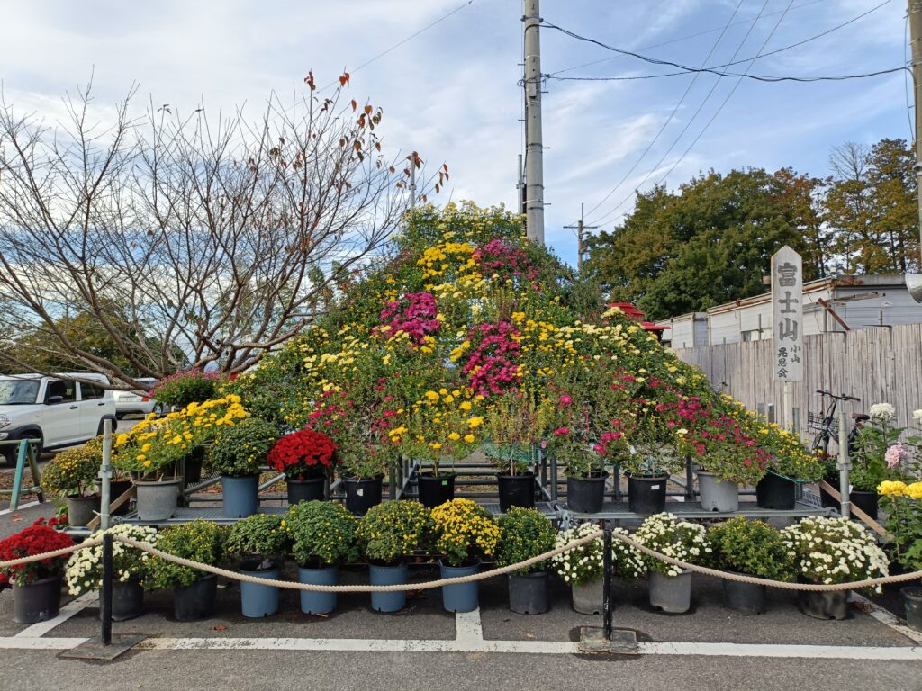 会員全員の協力により多数の菊を並べて作られる迫力のある「富士山」をはじめ、一般盆養菊や静岡懸崖など、数多くの菊花が咲き誇ります。