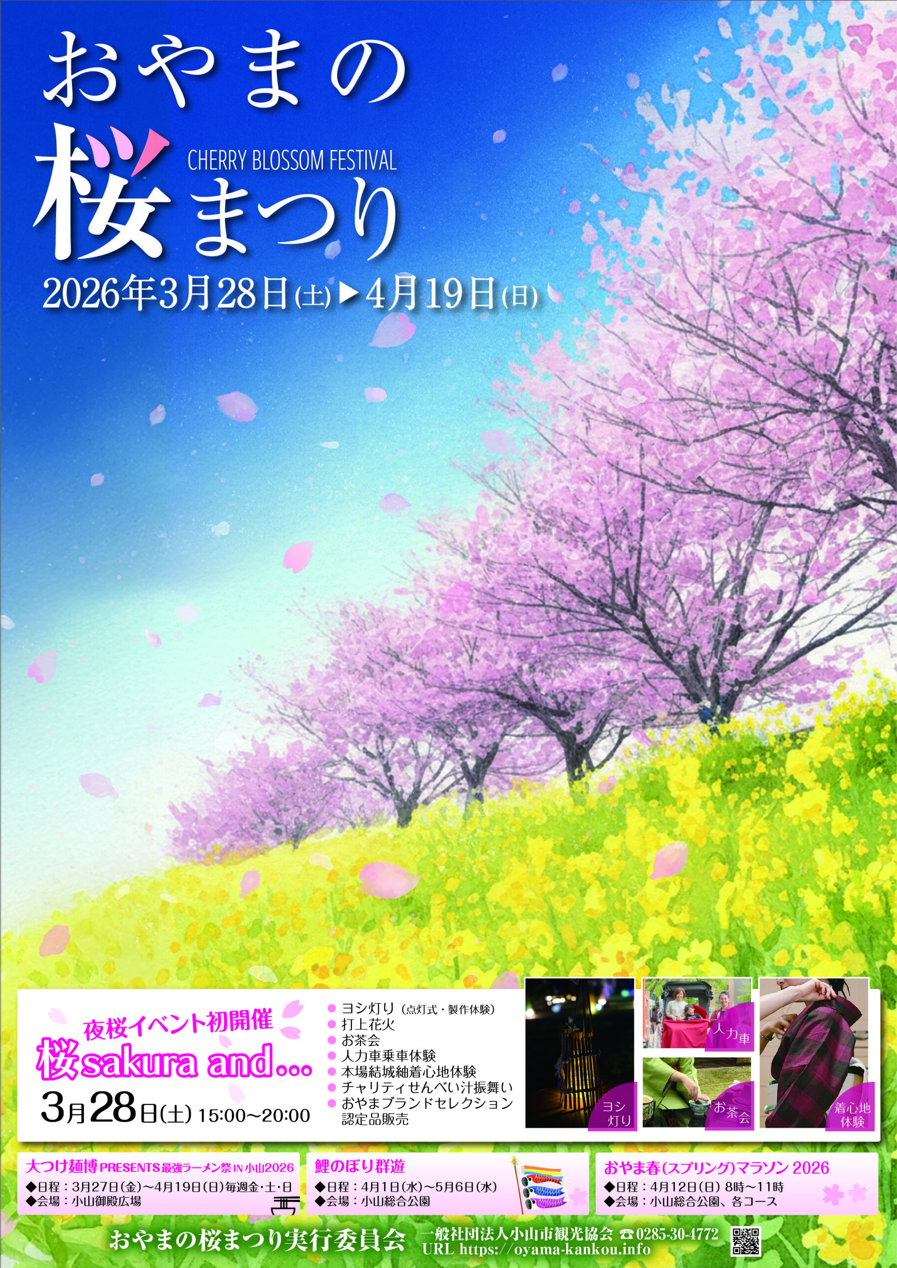桜の開花に合わせ、3月28日(土)から4月19日(日)まで「おやまの桜まつり」を開催します。