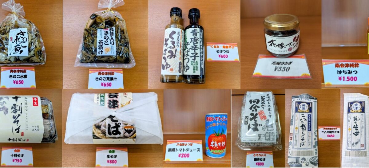 お蕎麦や南郷トマトジュース、奥会津特産きのこ水煮などおいしいものが大集合します。