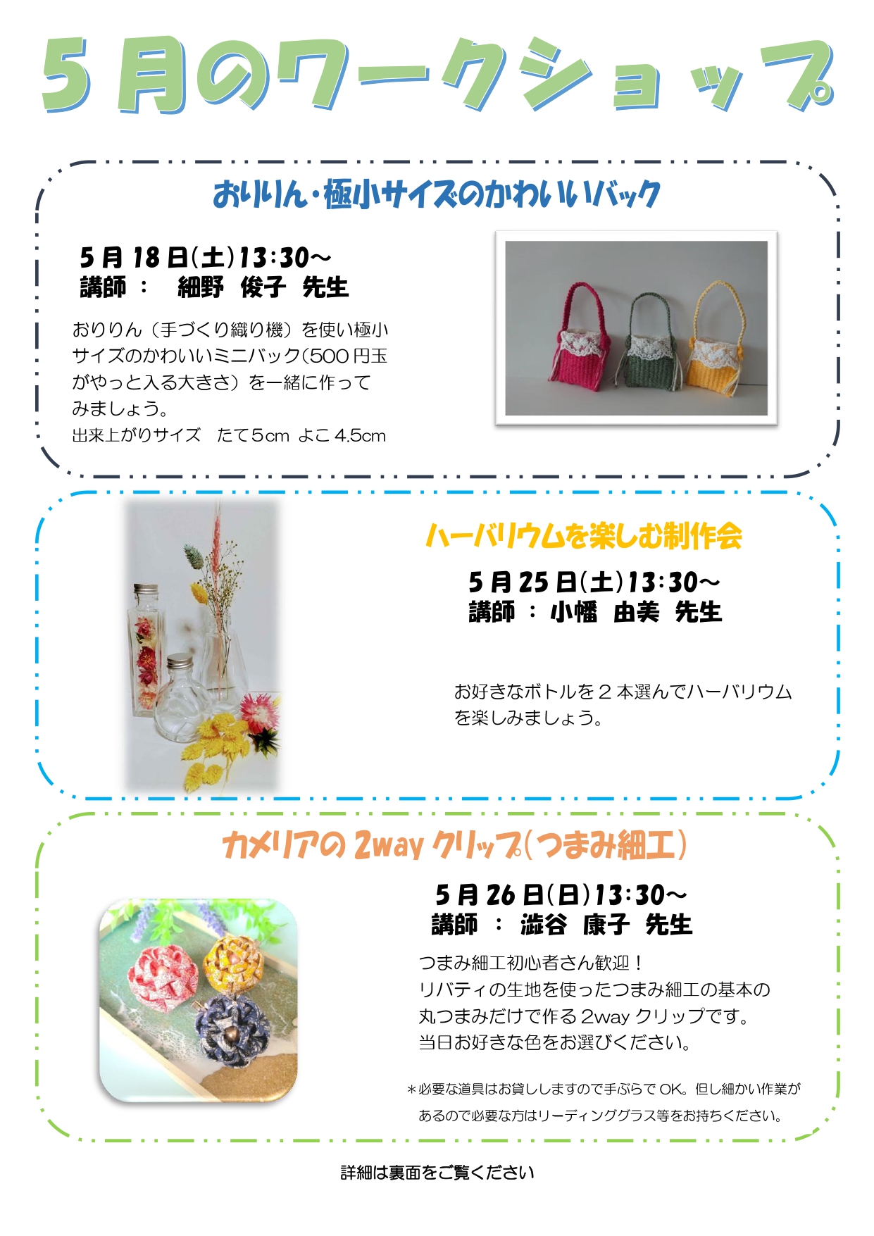 【開催終了】5月のワークショップの開催のご案内