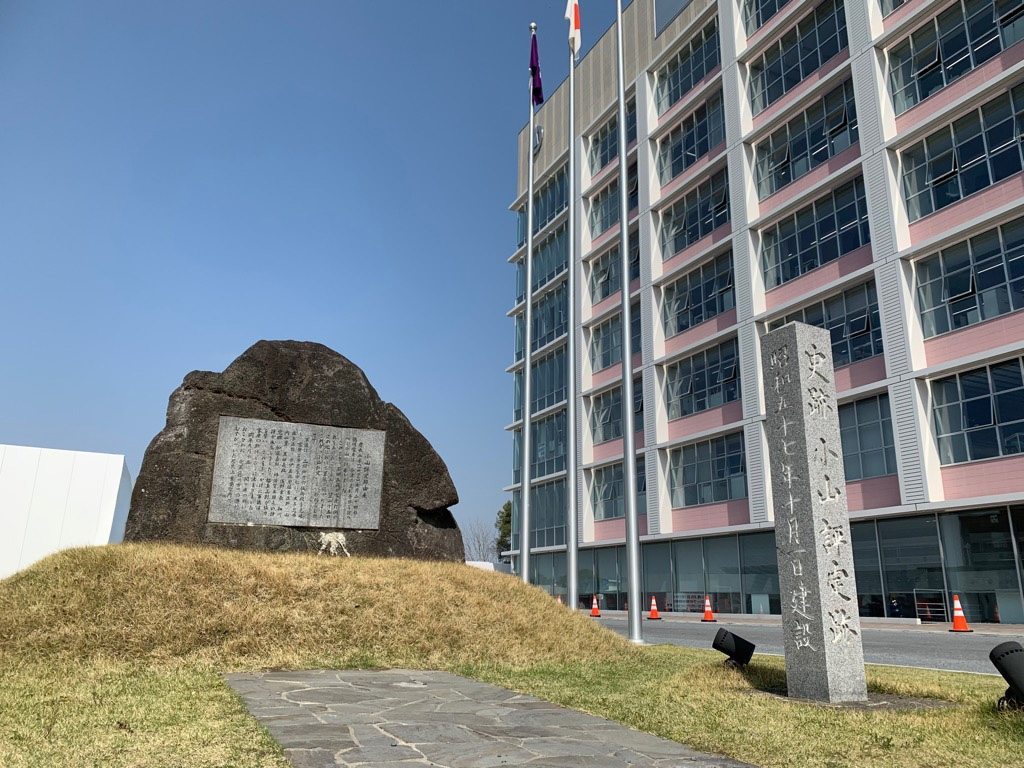 - 小山駅西口、祇園城通りを進み、徒歩約8分、小山市役所に小山評定の碑がある。