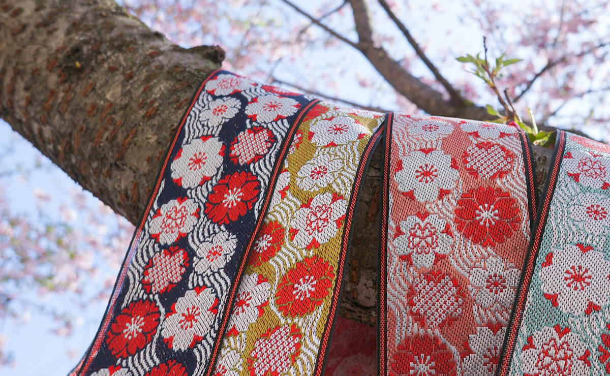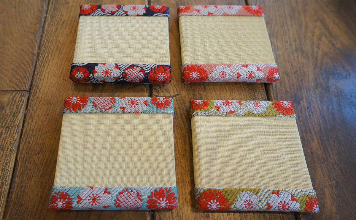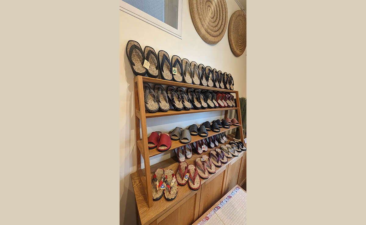 祇園城通りに面したお店では、思川桜をデザインした畳縁の小物やいぐさの草履、かご、ござ等の販売をしています。